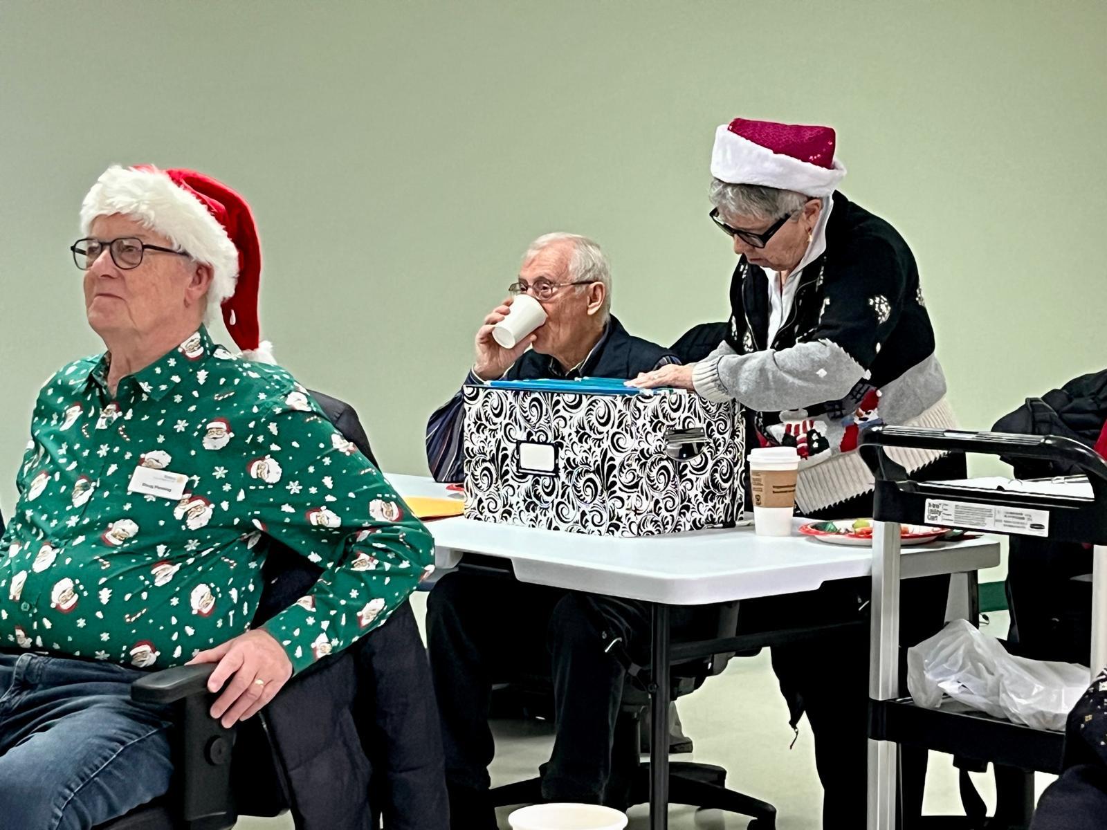 Instead of a scheduled speaker, the main meeting activity today was a group activity to promote fellowship and friendship. Past President Mike Christie facilitated the activity that saw all of the members in attendance share a favorite Christmas memory or tradition in their family. A few of the memories shared were...