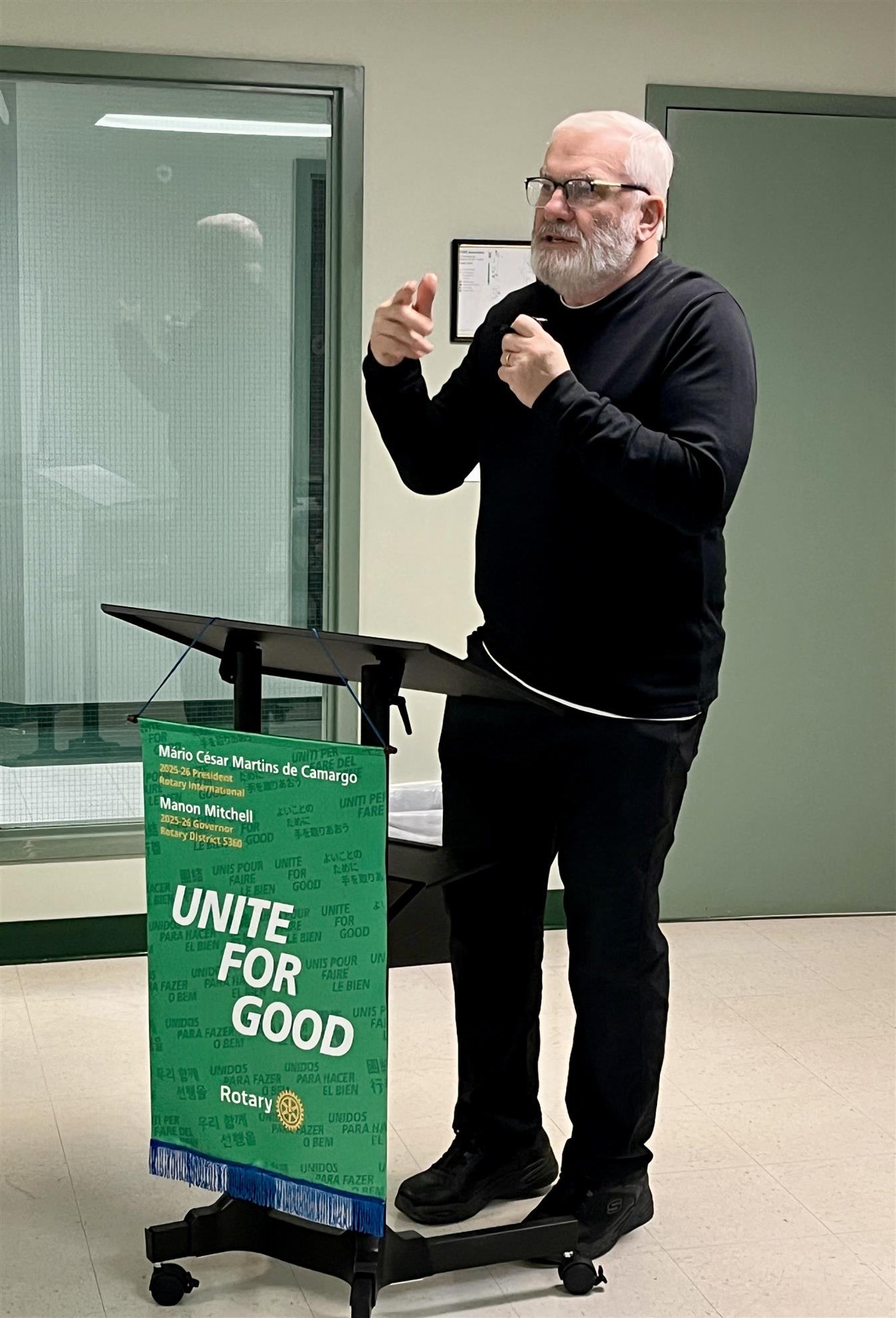 Lorelei sums up her impressive resume and accomplishments by noting “Rotary made me do it!” Lorelei wove an history of her families roots in the Canadian fur trade and early Metis culture into her journey, noting how she had benefitted from her experiences early on as a Rotary Peace Fellow. She describes peacebuilding as astakisowin (belonging)) and conflict transformation. We often view peacebuilding as a having a military aspect but the process is about increasing connectors and decreasing dividers. This concept can be scaled up or down from nations to individual people and applied to our everyday lives.